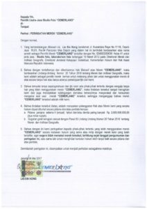 Lebih lanjut Liu mejelaskan, “Perlindungan hukum terhadap merek terdaftar diberikan untuk jangka waktu 10 (sepuluh) tahun sejak tanggal penerimaan permohonan yang telah memenuhi persyaratan administratif, yang mana jangka waktu tersebut dapat diperpanjang, maka tidak ada alasan apapun Pengusaha yang menamakan usahanya menggunakan nama Usaha Yang Sama , merk yang sama dan dalam bidang usaha yang sama yaitu Cemerlang Foto,” jelasnya mengutip UU Merek, pasal 28.